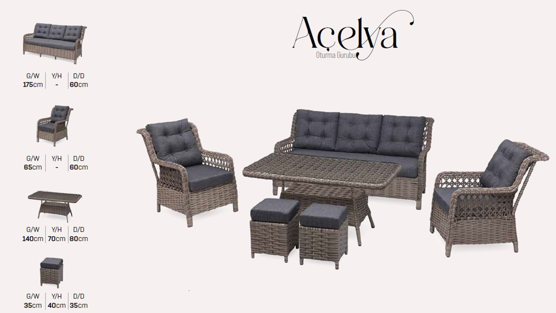 | Rattan 3 lü Koltuk | 175 | 85 | 60 |