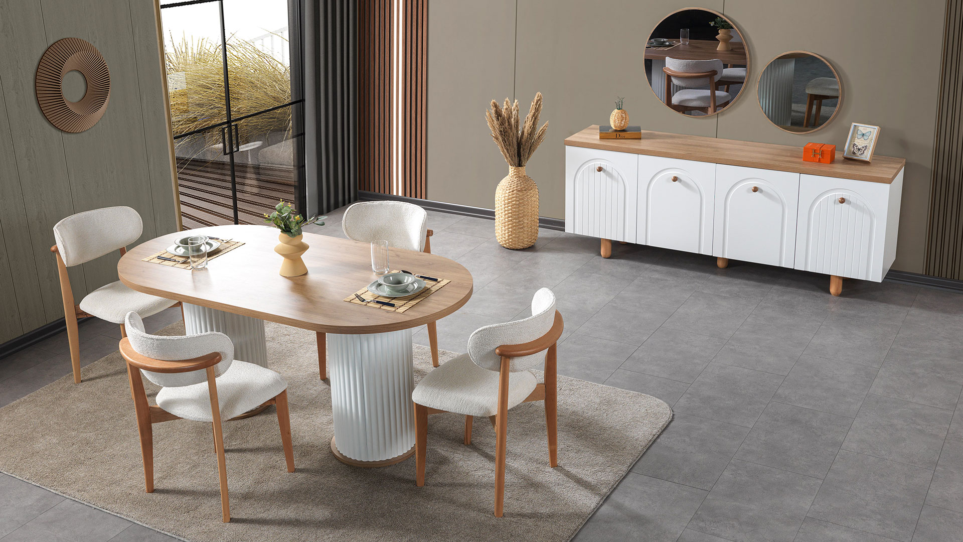 | Takım İçeriği | Konsol ve Aynası, Masa, 6 Adet Sandalye |