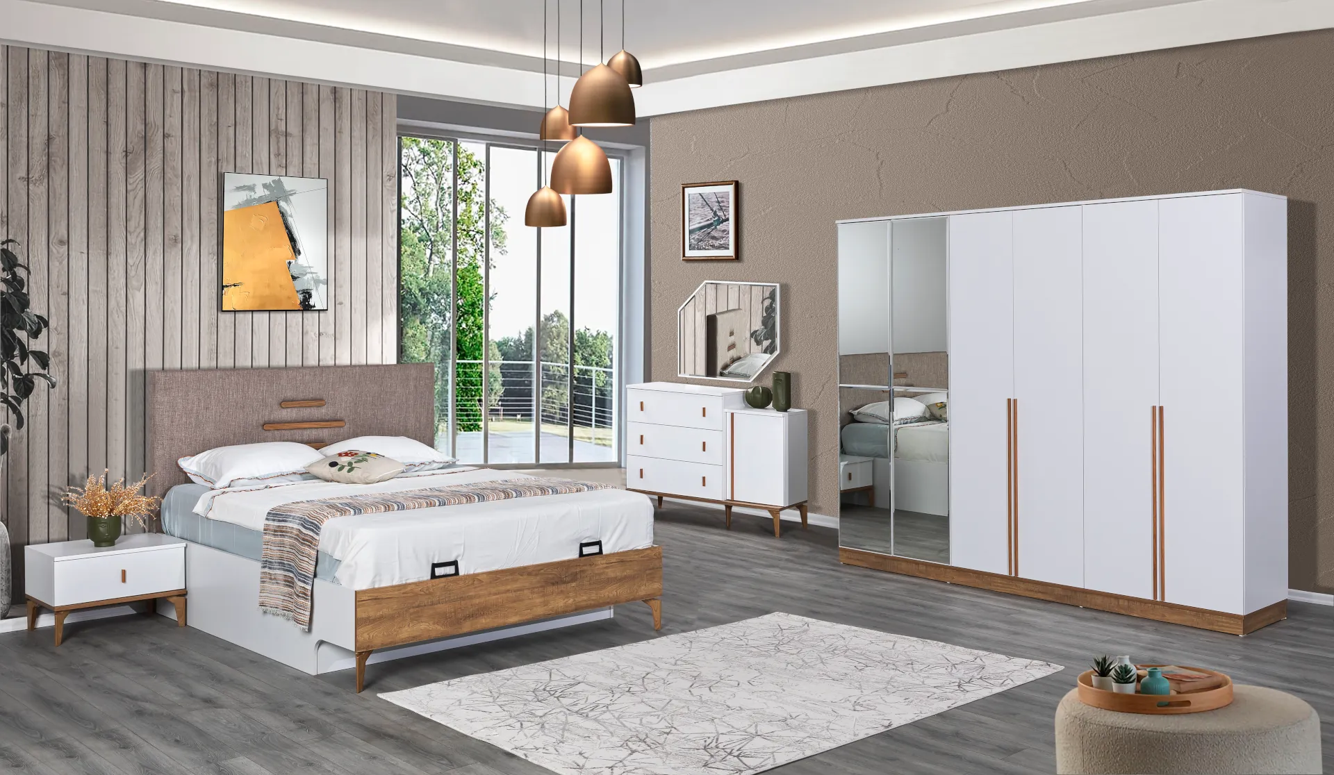 | Yatak Odası Takım İçeriği | Gardırop, Bazalı Karyola ve Başlığı, Şifonyer ve Aynası, 2 adet Komodin |