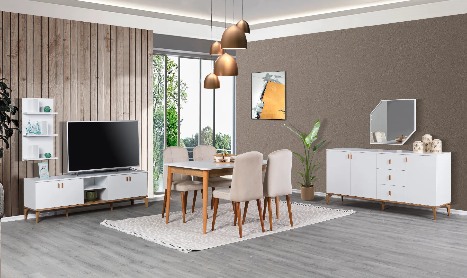 | Yemek Odası Takım İçeriği | Konsol ve Aynası, Yemek Masası ve 6 Adet Sandalye |