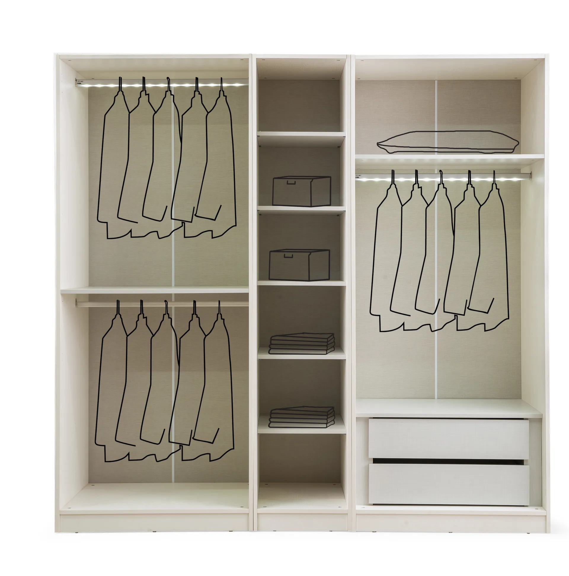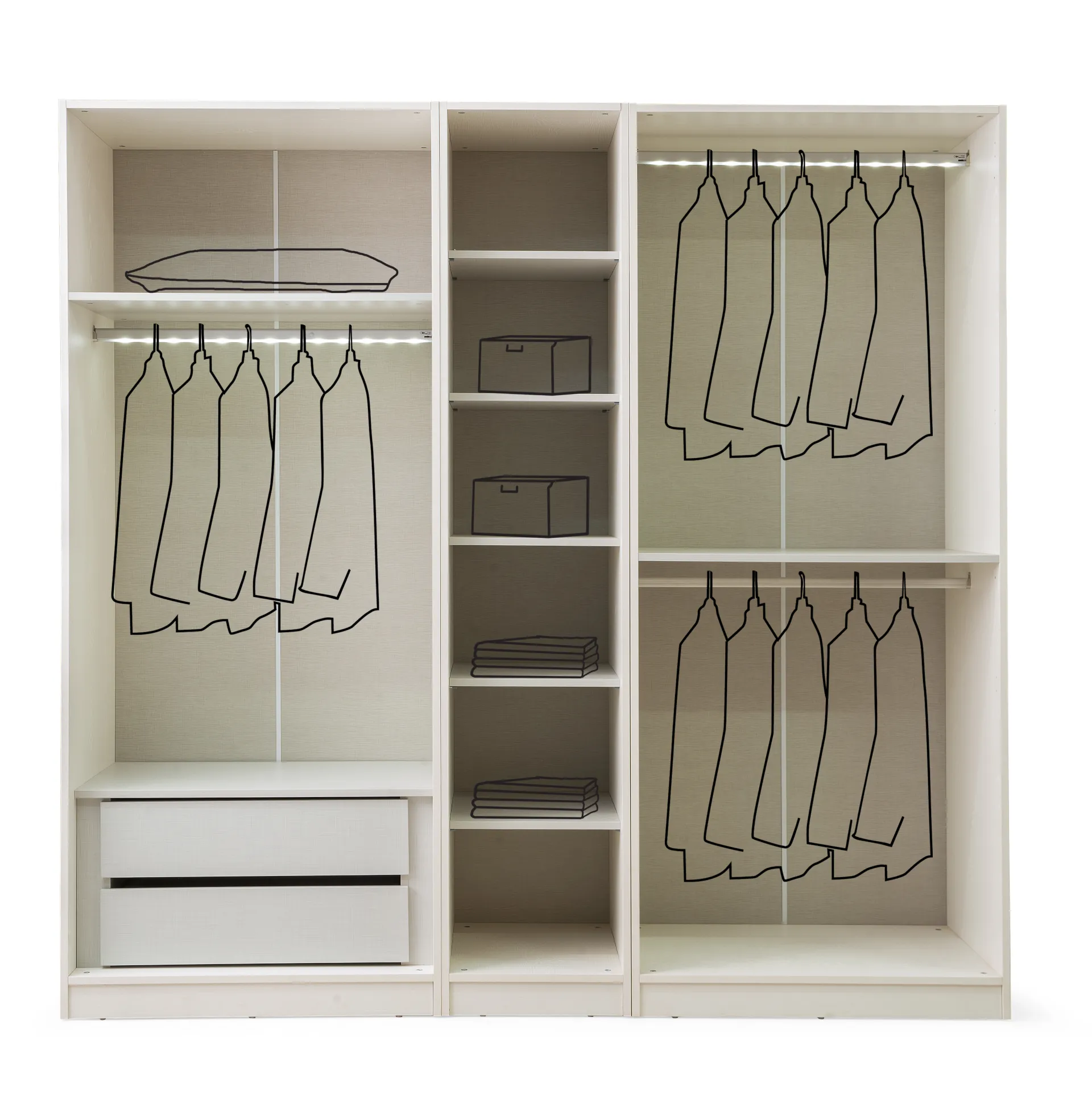 | Ek Bilgiler | Gardırop modüler parçalardan oluşmaktadır.Odanızın ölçüsüne göre dolap ölçüsü arttırılıp azaltılabilir. |