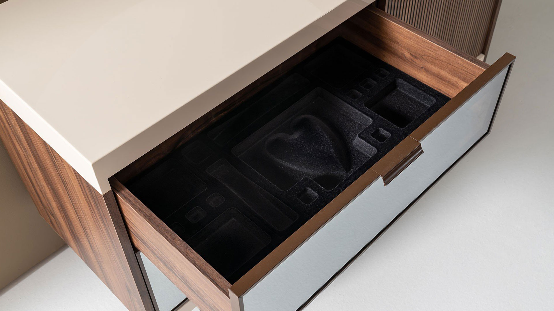 | Dolap İçeriği | Askılı, raflı ve çekmeceli. |